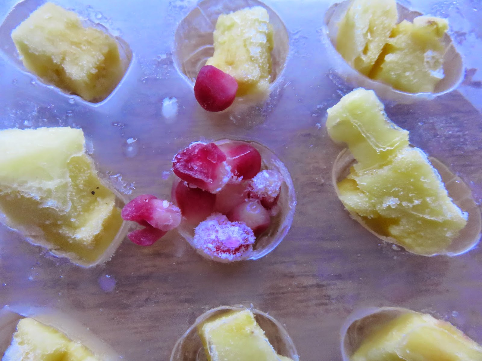Šią mintį radau danės Ninkos Mauritson knygoje apie jos sveiką šeimą. Tai taip paprasta. Pabandžiau ir visai patiko. Kad būtų mažiau angliavandenių galima užsišaldyti vandens ledo kubelius su uogom. Taip berods rekomenduoja Dukanas, bei teigia, kad ledo kramtymas sujudins sistemą, numalšins saldumynų poreikį, ir privers organizmą sunaudoti daugiau kalorijų šildant leduką.